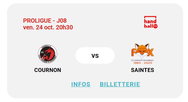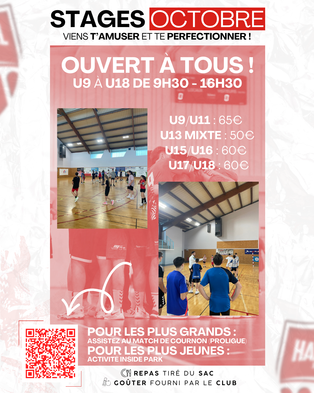 - STAGE 2 : S’amuser et se former pour les moins 13 ans - Le 23 et 24 octobre au gymnase Ennemond Richard - Activité : Match Proligue - Cournon contre Saintes